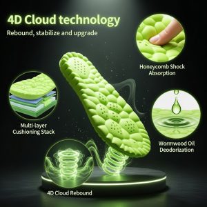 Natural 4D Cloud Comfort Sport Insoles – Super Soft Shock Absorption Orthopedic Inserts for Running & Basketball Shoes
